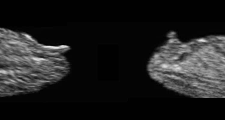 Logo abaixo uma imagem um pouco mais trabalhada da genitália fetal para evidenciar a diferença entre meninos e meninas (nem sempre é assim claro no ultrassom!). E não se deixe enganar, a frequência cardíaca do feto não permite determinar o sexo.